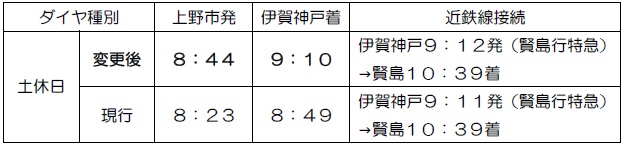 (1)土休日ダイヤの近鉄線伊賀神戸駅9時台の賢島行特急への接続を改善します。