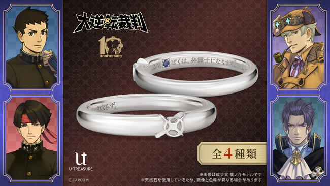 「大逆転裁判」シリーズ10周年を記念して、成歩堂・亜双義・ホームズ、バンジークスのメッセージリング(指輪)が登場!