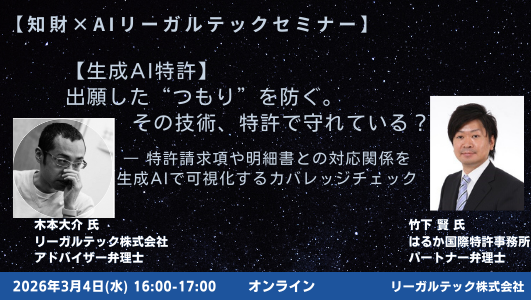 【2026年3月4日(水)16時開催@オンライン】知財×AIリーガルテックセミナー(第25回)