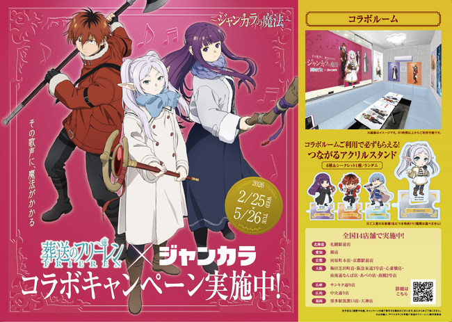 全国で204店舗を展開し、西日本においてカラオケ業界最大規模を誇るジャンカラは、人気TVアニメ『葬送のフリーレン』とのコラボレーションを2026年2月25日(水)よりスタートいたします。
