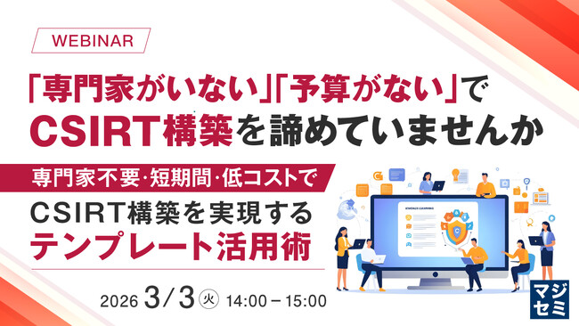 マジセミ株式会社は「「専門家がいない」「予算がない」でCSIRT構築を諦めていませんか」というテーマのウェビナーを開催します。