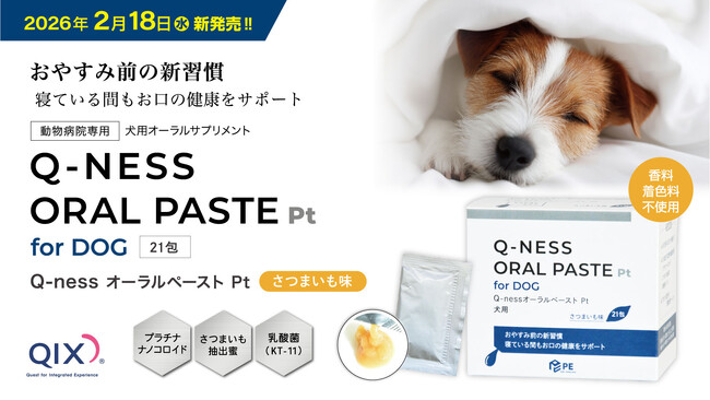株式会社QIX(所在地:東京都町田市、代表取締役社長:生田目康道)は、『Q-ness オーラルペーストPt』を2026年2月18日(水)より全国の動物病院に向けて販売開始いたします。