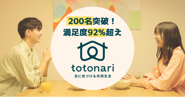 恋リアブームの中、擬似体験できる恋愛サービスが拡大中!恋に気づける共同生活「totonari」参加者200名突破、満足度92%超えを維持