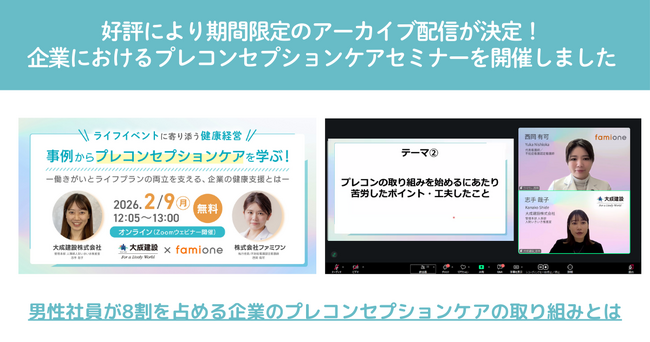 大成建設と両立支援をテーマとしたプレコンセプションケアセミナーを開催し、アーカイブ配信を開始しました
