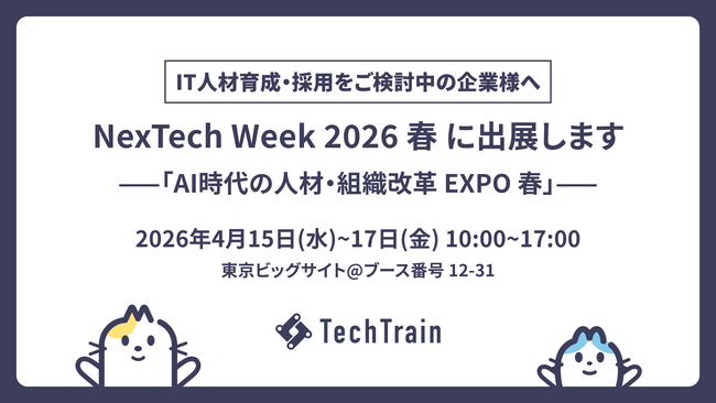 IT人材育成を“現場で使える”状態にするには?成果が続く仕組みづくりを公開。TechTrain、NexTech Week 2026 春(4/15~17・東京ビッグサイト)に出展