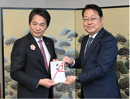 桂川亀岡市長は、株式会社ウエダ(代表取締役 上田 博之 様)から企業版ふるさと納税を受領しました