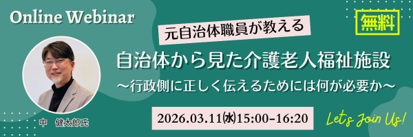 【3月11日開催】無料オンラインセミナー「元自治体職員が教える 自治体から見た介護老人福祉施設~行政側に正しく伝えるためには何が必要か~」