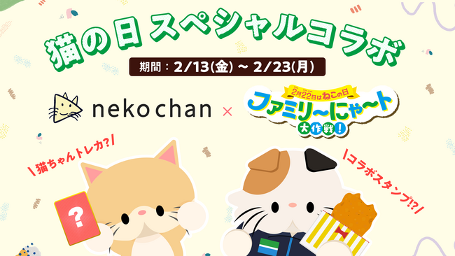 本企画では、ファミリーマートが展開する「あなたのねこがトレカになる!?」Xキャンペーンと連動し、特設サイトでランダムに作成できる全22種類のトレカデザインのうち、nekochanオリジナルデザインのトレカが1種類登場します。