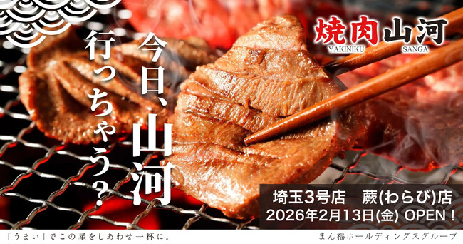 まん福ホールディングスグループの株式会社サンフレッシュミートが運営する「肉問屋直営 焼肉山河」は、2026年2月13日(金)、14号店となる蕨店(わらびてん)をオープンいたします。