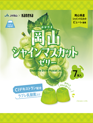 岡山県産シャインマスカットピューレを使用し、上品な甘みと爽やかな風味が特長です。ラブレ乳酸菌入りで、デザート感覚で気軽に乳酸菌を摂取できます。また、CIデキストラン配合で、お口にやさしいからだ想いのゼリーです。