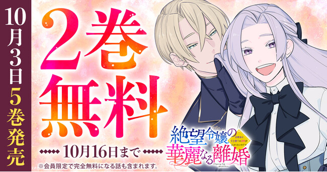 『絶望令嬢の華麗なる離婚~幼馴染の大公閣下の溺愛が止まらないのです~』「ヤングアニマルWeb」にて2巻無料キャンペーン実施!!