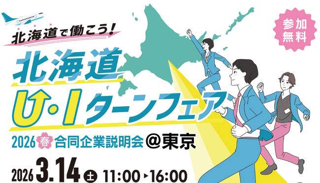 教育事業を展開するヒューマンアカデミー株式会社(本社:東京都新宿区、代表取締役:今堀健治、以下「当社」)は、昨年度に続き、北海道労働局より「北海道U・Iターンフェア2026春(合同企業説明会)業務委託」を受託いたしました。これに伴い、2026年3月14日(土)、東京・西新宿にて北海道の優良企業30社が参加する合同企業説明会を開催いたします。