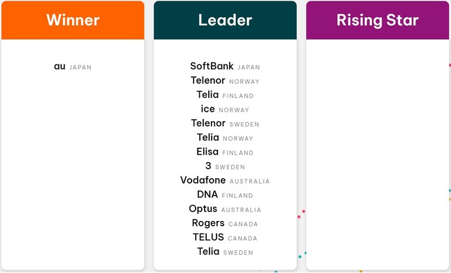 Opensignalは、各指標・各ランドエリア区分ごとにトップ・スコアのオペレーターを「グローバル・ウィナー/グローバル・リーダー」として表彰しました。