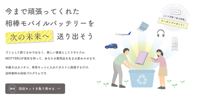 「使い終わった相棒を、未来のエネルギーへ。」 MOTTERU、回収率99%※の技術を用いたモバイルバッテリー回収プログラムを開始