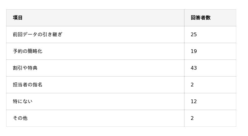 - 再依頼のハードルを下げる要素は「割引や特典」「前回のデータの引き継ぎ」。