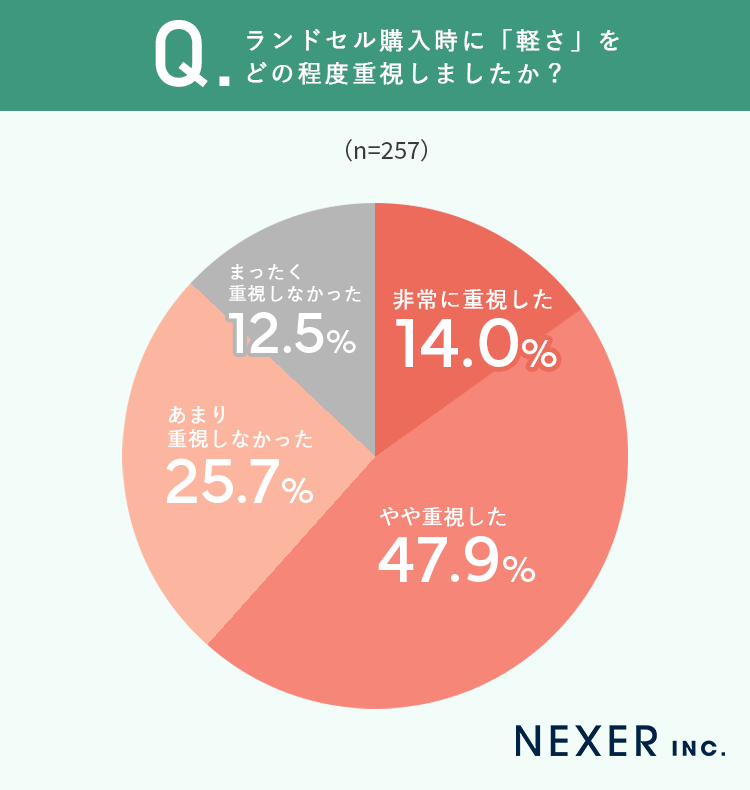 続いて、ランドセル購入時に「軽さ」をどの程度重視したか聞いてみました。
