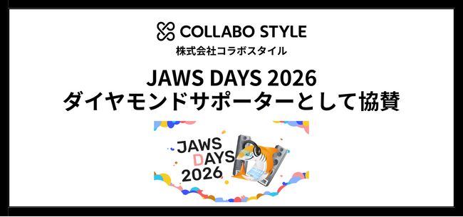 「ワークスタイルの未来を切り拓く」を理念に掲げる株式会社コラボスタイル(所在地:愛知県名古屋市、代表取締役社長 兼 CEO:松本 洋介、以下コラボスタイル)は、2026年3月7日(土)に開催される、日本最大級のAWSユーザーコミュニティイベント「JAWS DAYS 2026」にダイヤモンドサポーターとして協賛することをお知らせいたします。