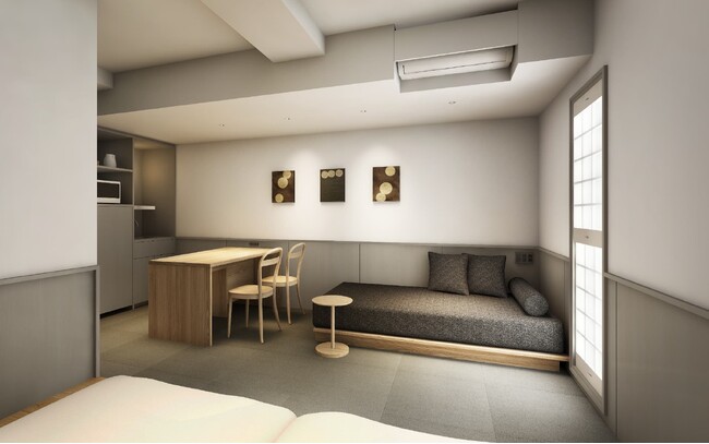 客室には、無印良品の家具やインテリアアイテムを中心に、京都を拠点とするアーティストや京都近郊で活動する作家の作品を取り入れました。シンプルな空間の中に、穏やかで落ち着きのあるしつらえを施し、ゆったりとくつろげる雰囲気を大切にしています。滞在のひとときが心をほどき、日々の暮らしに小さな気づきを持ち帰っていただける、そんな空間です。