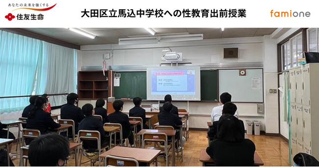 「子どもを願うすべての人によりそい 幸せな人生を歩める社会をつくる」をビジョンに掲げ、法人の従業員向け福利厚生や自治体の住民向け支援を行うヘルスケアサポートサービス「ファミワン」 https://famione.com/benefit/ などを展開する株式会社ファミワン(本社:東京都渋谷区、代表取締役:石川勇介)は、2026年1月に住友生命保険相互会社(本社:大阪府大阪市、取締役 代表執行役社長:高田 幸徳)との協業に関するプロジェクトの一環として、性教育に関する出前授業を、東京都の大田区立馬込中学校でオンライン開催しました。