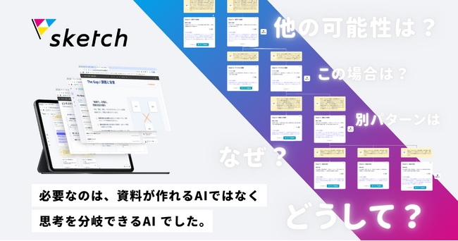 triven Sketchは、資料を「作らせる」ツールではありません。ユーザーの思考をAIと広げ、比較検討しながら「圧倒的な納得感」のあるビジネスを自分の手で生み出すためのAIです。[画像5: https://prcdn.freetls.fastly.net/release_image/41890/69/41890-69-63c106b597d4b7a198d31745e3d67e97-1000x548.jpg?width=536&quality=85%2C75&format=jpeg&auto=webp&fit=bounds&bg-color=fff ]