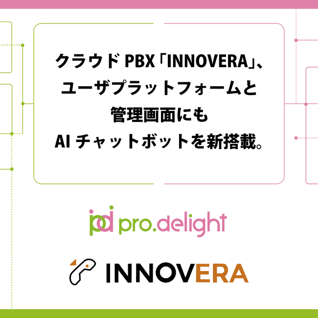 電話のDXを推進する株式会社プロディライト(大阪市中央区:代表取締役社長 小南 秀光、証券コード:5580、以下プロディライト)は、クラウドPBX「INNOVERA 2.0」において、ユーザプラットフォームおよび管理画面の機能アップデートを実施し、新たにAIチャットボットを搭載したことをお知らせいたします。