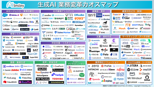 アイスマイリー、生成AI 業務変革カオスマップを公開!~実務を再定義する「自律・自動化・専門特化」、200製品以上の最新ソリューションを集約~