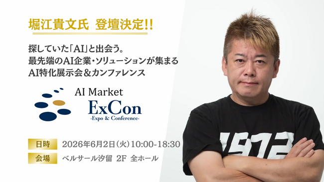 【堀江貴文氏登壇決定!】最先端のAI企業・ソリューション特化展示会&カンファレンス「AI Market ExCon 2026」|6月2日開催
