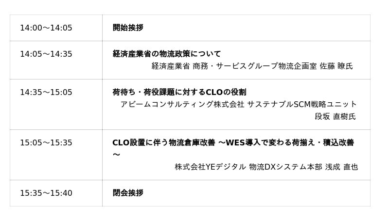 株式会社YE DIGITAL(本社:北九州市小倉北区、代表取締役社長:玉井裕治、以下、YEデジタル)は、物流DX推進のキーマンであるCLO(物流統括管理者)を対象に、行政・コンサル・技術の3視点から学ぶウェビナー「物流統括管理者(CLO)が導く”成果が出る”物流改革」を、2026年3月11日(水)に開催します。