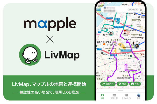 共有地図アプリ「LivMap」、マップルの地図と連携開始。視認性の高い地図で、フィールド業務のDXを推進。