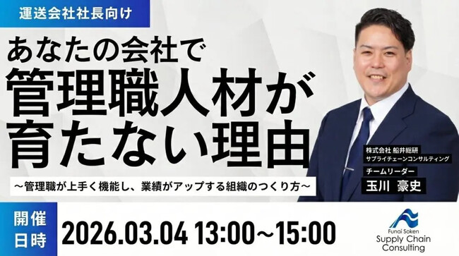 2026年3月4日(水)、株式会社船井総研サプライチェーンコンサルティング(本社:東京都中央区、代表:橋本直行、以下「船井総研SC」)の経営コンサルタントが運送会社の管理職育成について解説します。