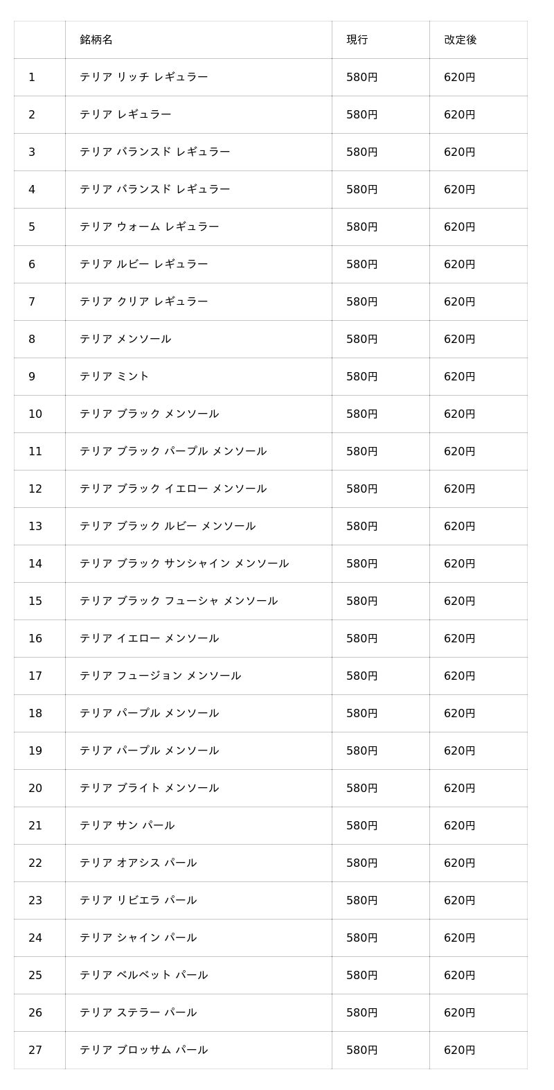 加熱式たばこ(全50銘柄)1.テリア ファミリー (27銘柄)