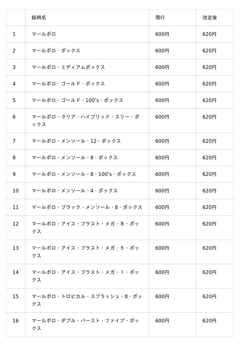 フィリップ モリス ジャパン合同会社(本社:東京都千代田区)は、フィリップ モリス インターナショナルの取り扱う加熱式たばこ及び紙巻たばこ製品66銘柄の小売定価改定を実施することにつき、弊社製品の輸入・販売を行う双日株式会社(本社:東京都千代田区)を通じて、財務省より認可を受けましたので、お知らせいたします。