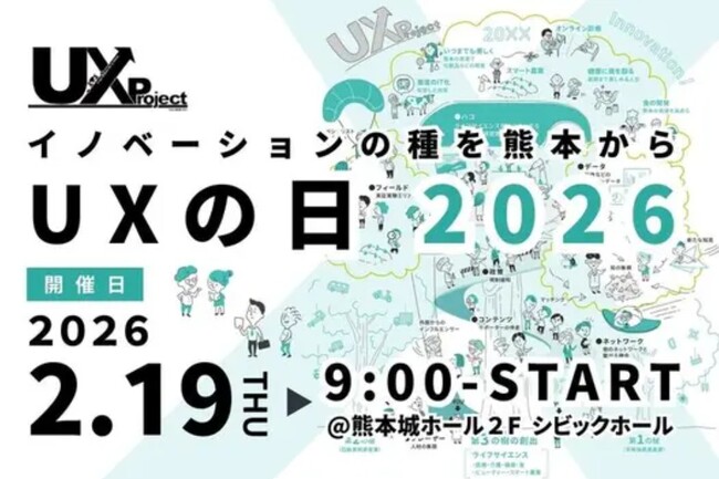 熊本県が主催する「UXの日 2026(UXプロジェクト等 成果報告会)」が、2026年2月19日(木)に熊本城ホール(熊本市)にて開催されます。