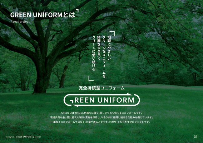 本ユニフォームは、三栄コーポレーションが主導する、環境負荷を最小限に抑え、半永久的に循環し続ける仕組みを備えた「完全持続型ユニフォーム」です。