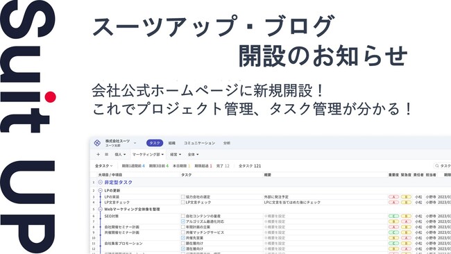 AIタスク管理・プロジェクト管理ツール「スーツアップ」、会社公式ホームページにスーツアップ・ブログを開設!