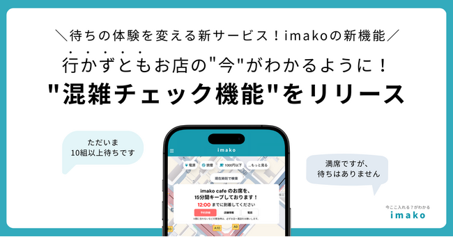 行かずともお店の"今"がわかるように!imako新機能 "混雑チェック機能"をリリース