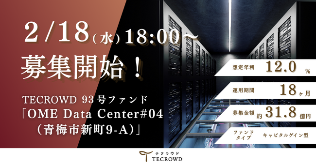 【想定年利12.0%】国内キャピタルゲイン型ファンド「OME Data Center #04(青梅市新町9-A)」に投資するTECROWD93号ファンドの募集開始