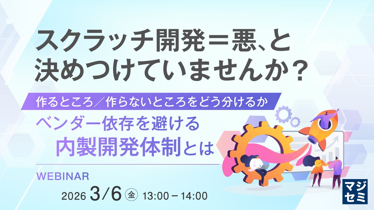 マジセミ株式会社は「スクラッチ開発=悪、と決めつけていませんか?」というテーマのウェビナーを開催します。