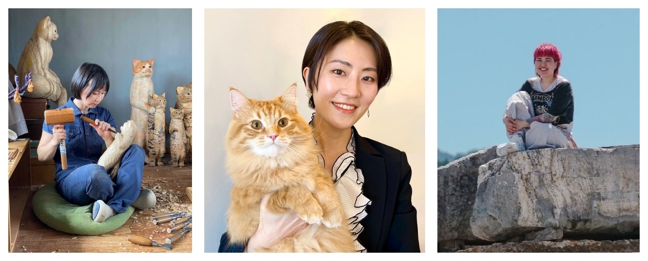 阪神梅田本店でこれまでに4回個展を開催し、そのすべての作品が完売している木彫作家・花房さくらを中心に、石彫作家・土井木蓮と日本画家・溝口まりあの若手3人によるグループ展。人気のモチーフ“ネコ”をテーマにした作品をメインに、“コーヒー”、“チョウチョウ”などの共有テーマを基に、各作家の個性あふれる作品が交差します。ぜひ、ご高覧ください。