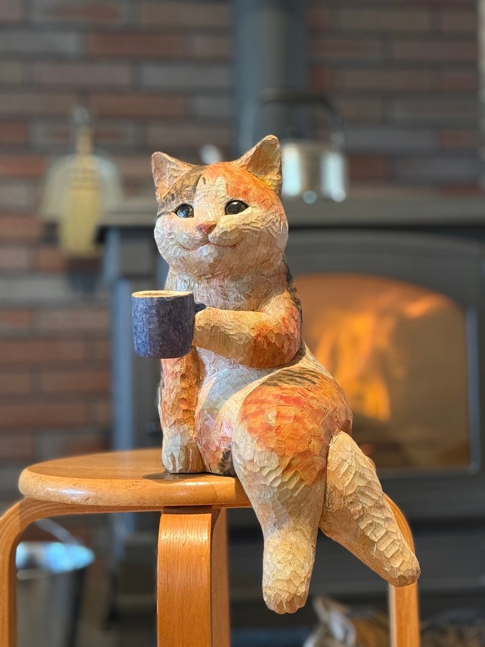 「ひだまりブレンド」(木彫、クスノキに油彩/H38×W20×D30cm)605,000円(税込)