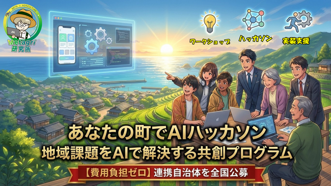 農業×新技術を推進する農家支援コミュニティ「Metagri研究所」(運営:株式会社農情人、本社:千葉県船橋市、代表取締役:甲斐雄一郎)は、地域課題をAIで解決する共創プログラム「あなたの町でハッカソン」を開始し、連携自治体・地域組織の公募を2026年2月18日より受付開始いたします。