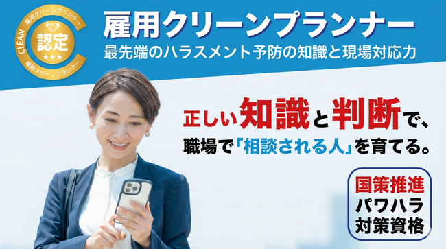 ハラスメント対策は、守りのコンプライアンスから、組織を守る判断力へと進化する段階に入りました。対策をやっている企業から、判断ができる企業へ。雇用クリーンプランナーは、その転換点を支える実務資格として、段階別体系を強化しました。