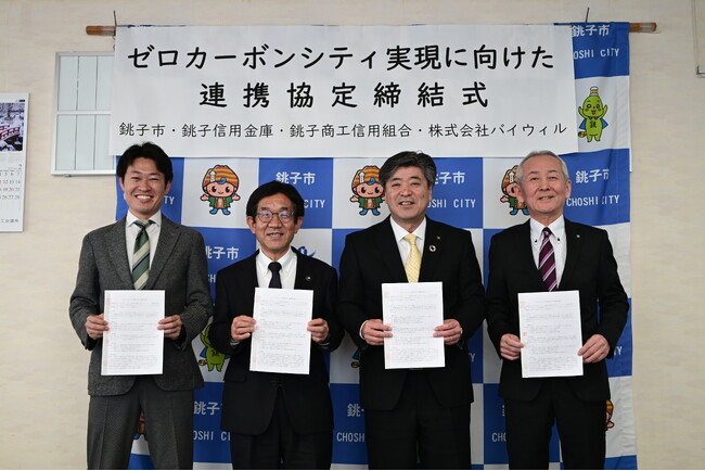 千葉県銚子市、銚子信用金庫、銚子商工信用組合、バイウィルが「ゼロカーボンシティ実現に向けた連携協定」を締結