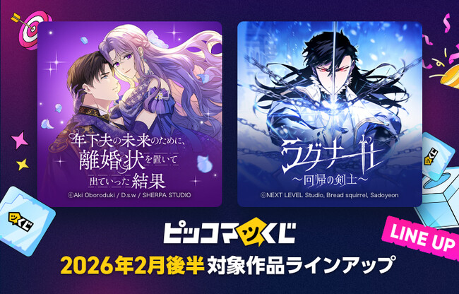 株式会社カカオピッコマ(本社:東京都港区、代表取締役社長:金在龍)は、ハズレなしのオンラインくじサービス『ピッコマくじ』2月後半の新作ラインアップを公開いたしました。