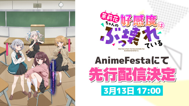 株式会社ウェイブ(本社:東京都豊島区、代表:関口航太)が運営するアニメ見放題サービス「AnimeFesta(アニメフェスタ)」にて、2026年3月13日(金)17:00より、TVアニメ『茉莉花ちゃんの好感度はぶっ壊れている』を独占先行配信することが決定しました。