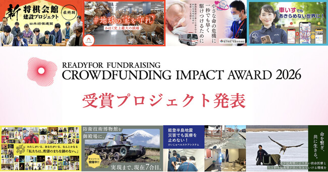 READYFOR株式会社(本社:東京都千代田区、代表:米良はるか)は、日本初・国内最大級のクラウドファンディングサービスREADYFORにて、「READYFORファンドレイジング クラウドファンディングインパクトアワード2026」を開催し、受賞プロジェクトを決定いたしました。