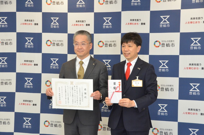 愛知県豊橋市が進める「多目的屋内施設及び豊橋公園東側エリア整備・運営事業」に対し、市内に製造拠点のあるトピー工業株式会社(東京都品川区)から企業版ふるさと納税による寄附が寄せられました。これを受け、2026年1月22日(木)、豊橋市役所で目録授与式と感謝状贈呈式が開かれました。
