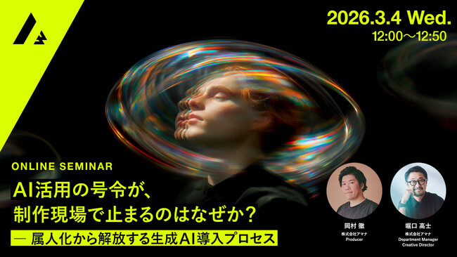 コミュニケーション変革をクリエイティブで実現する株式会社アマナ(本社:東京都品川区、代表取締役社長:金子剛章、以下「アマナ」)は、2026年3月4日(水)、『AI活用の号令が、制作現場で止まるのはなぜか?― 属人化から解放する生成AI導入プロセス』をテーマにウェビナーを開催します。