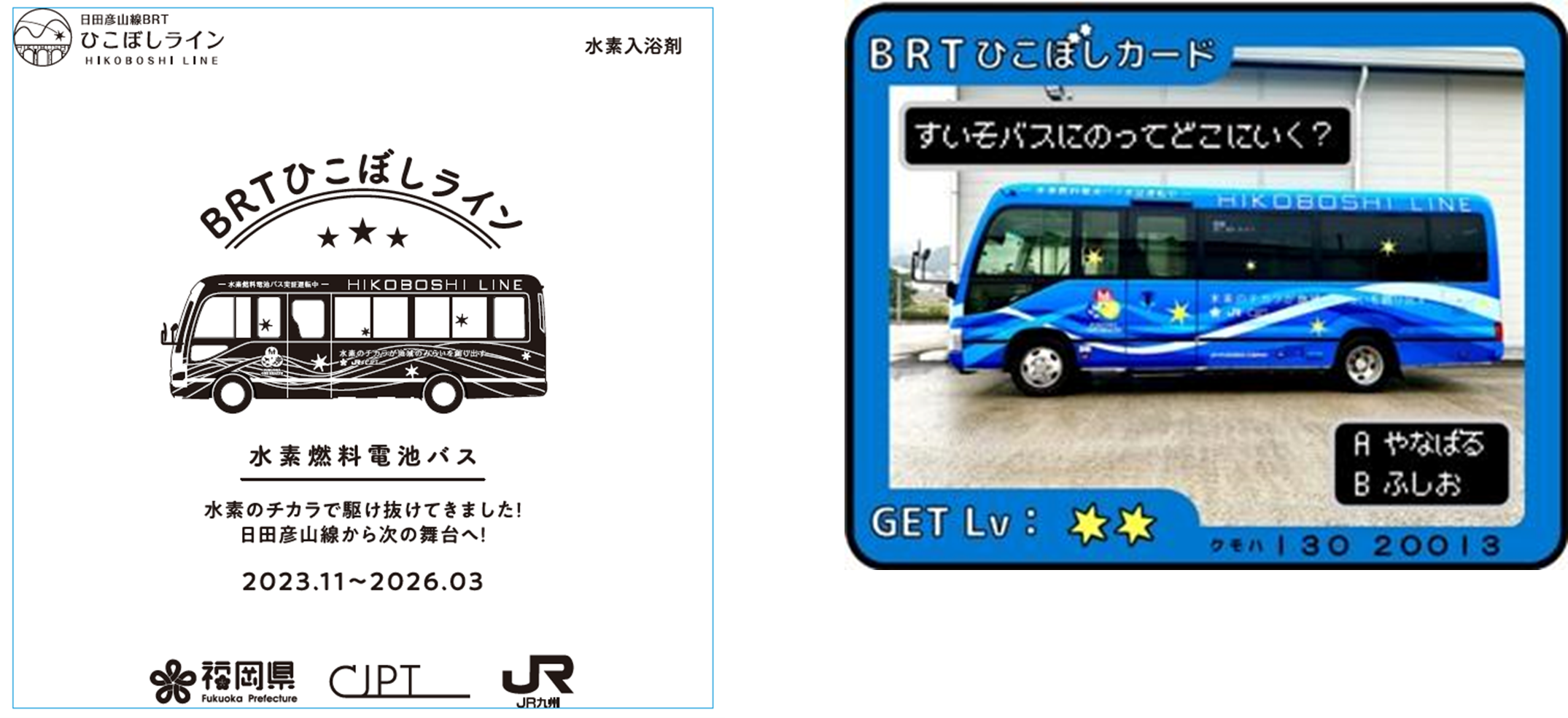 福岡県(知事:服部 誠太郎)、Commercial Japan Partnership Technologies株式会社(以下CJPT、本社:東京都文京区、代表取締役社長:中嶋 裕樹)、九州旅客鉄道株式会社(以下JR九州、本社:福岡市博多区、代表取締役社長執行役員:古宮 洋二)は、BRTひこぼしライン(正式名称:日田彦山線BRT)で実施してきた、環境にやさしい次世代エネルギーである水素を活用した燃料電池小型バス(以下FC小型バス)の実証運転を、2026年3月31日をもって終了いたします。