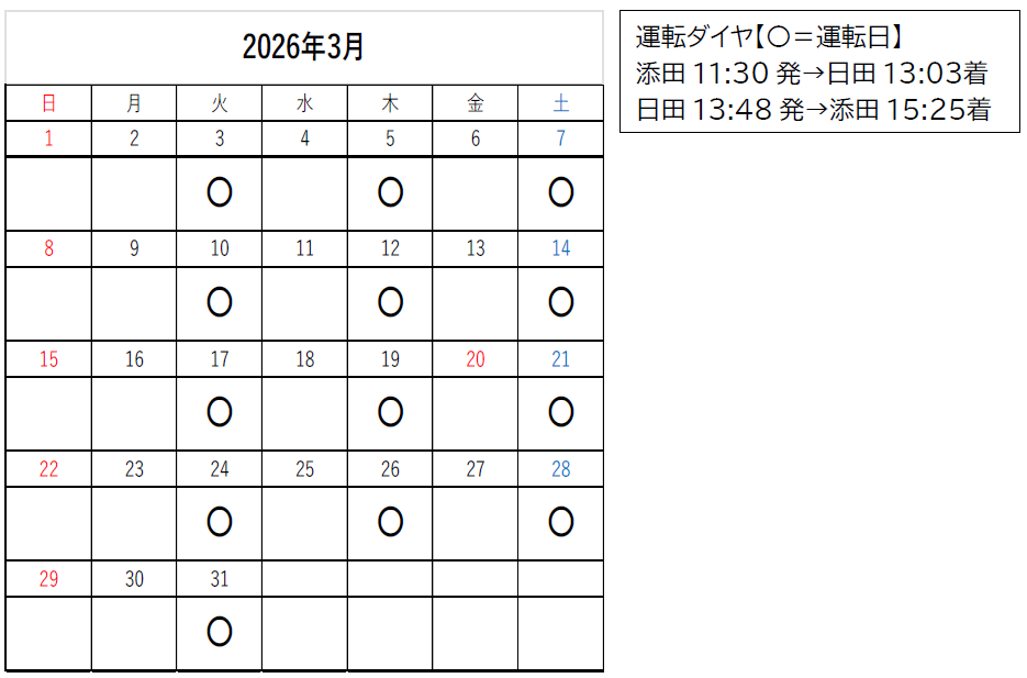 ※詳細な運転日や運転時刻などは別紙の「運転日カレンダー」をご覧ください。